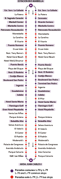 La línea L-70 tiene realiza menos paradas que la L-79, realizando el trayecto más rápido. A continuación detallamos todas las paradas de la nueva línea semidirecta: